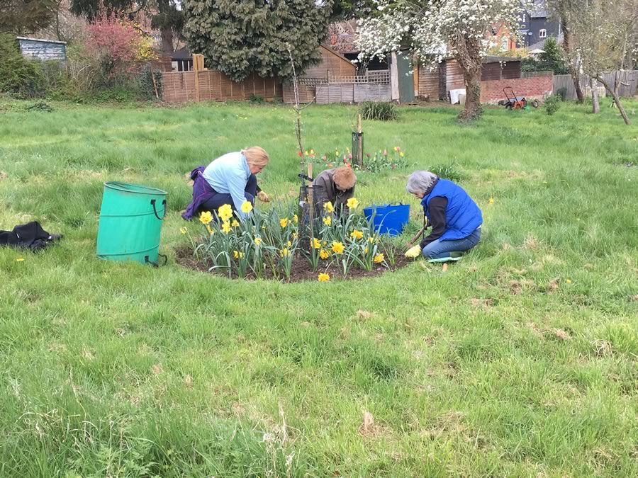 Decent amount of work done today. A lot of weeding, more strimming, paths mown. Sun was lovely, but air was quite chilly. Tea, coffee and welsh cakes helped volunteers battle on.